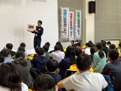 所の方から、施設の使い方を教えていただきました。冬の校外学習で担当していただいた方に再会できて子供たちはよろこんでいました。学校で学んだこととつなげてお風呂やベットの使い方を確かめました。