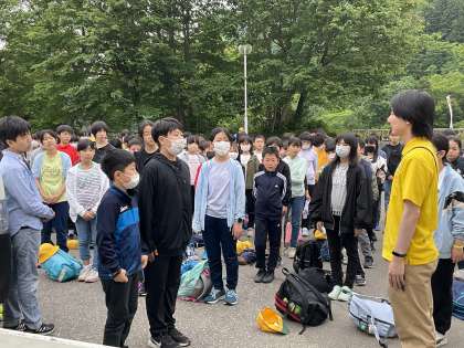 退所式の様子です。この2日間で体験できたこと、楽しかったこと等を所の方に伝えました。学校に戻ることで、改めて寂しさを感じていた子供たちでした。