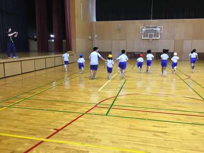 一緒に体操をした後は、並走しながら教えたり、回数を数えたりしました。