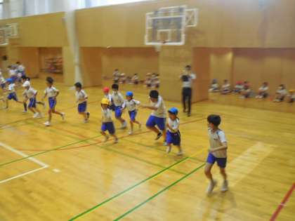 5年生に協力してもらい、シャトルランの測定を行いました。5年生とペアになり、リズムよくリードしてもらいながら、思い切り力を発揮することができました。シャトルランのあとは、猛獣狩りゲームをして遊びました。