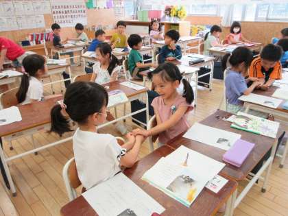 今日は「おうむ」のくちばしについて、「どうやって、えさであるくるみを食べるのか」をペアの友達と手でくちばしの真似をしながら動かしたり、くるみ割り機を試したりしながら、考えました。「まがったくちばしの先を、こうやってくるみの裂け目に入れるんだよ」とつぶやきながら、真剣に考える様子が見られました。「なぜ?」「どうして?」という疑問を話し合うことを大切にしながら、学習を進めています。