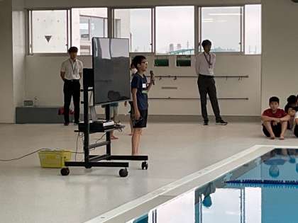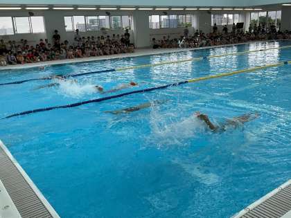 プール開きで6年生は、全校の代表として、お手本泳ぎを披露しました。泳ぎ終わると、みんなから拍手で迎えられて、とてもうれしい気持ちになりました。