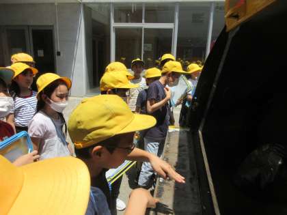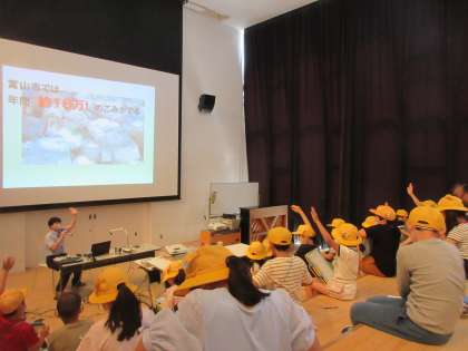 富山市環境センターから講師の方々をお招きして、「3R推進スクール」を行いました。社会科や総合的な学習の時間に、ごみ処理や環境問題に関心を寄せている子供たちは、真剣に話を聞いていました。