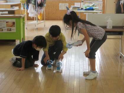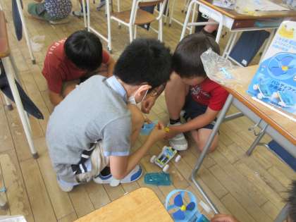 理科では、電池のつなぎ方によって電流の大きさがどのように変わるのか実験しました。何度も試行錯誤して、様々なことに気付いた子供たちでした。