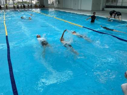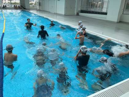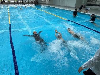 2回目の水泳学習をしました。自分でコースを選び、目当てに合わせて練習しました。それぞれに力を伸ばそうと頑張っています。