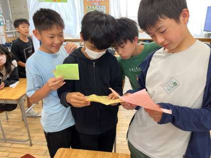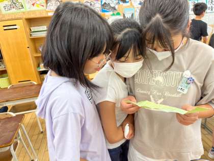 6年生は、同じ「にじいろ班」の3年生から「図工の作品を見に来てください」という招待状をもらいました。「先生、3年生からお手紙もらったよ」とうれしそうに掃除から戻って来ました。何度も読み返し「一緒に見に行こう」と誘いあって、招待してもらった日に行くことを楽しみにしていました。