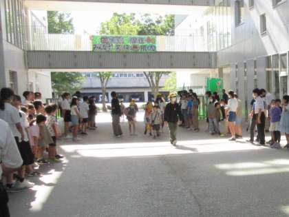 5日(水)のお昼の放送で、中学生からあいさつ運動への参加の呼びかけがありました。呼びかけに応えて、今朝はたくさんの子供たちが登校時にパサージュに集まりました。中学生と一緒に元気にあいさつを交わし、温かい一日の始まりになりました。