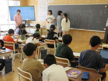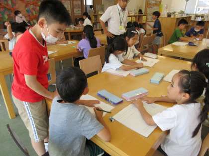夏休みが近づいた今日、町別児童会が行われました。6年生が中心になって、町内の行事や地域の中で気を付けることを話し合いました。近所の危険な場所を写真で示してみんなに分かりやすく伝えたり、ラジオ体操の予定などを連絡帳にメモするのを年上の子供たちが手伝ってあげたりと、同じ地域の仲間たちで仲良く安全に夏休みを過ごせるようにしっかり気持ちを高めました。