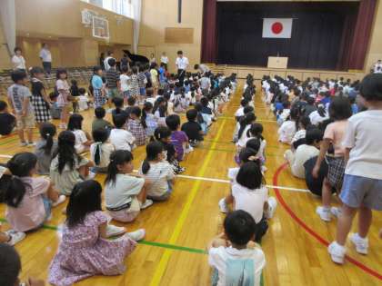 今日は2学期の始業式でした。夏休み明けでしたが、2年生のみんな全員でしっかりとした態度で式に臨むことができて素晴らしかったです。学級開きでは、夏休みビンゴを行い、夏休みの思い出を友達と語っている姿が見られました。