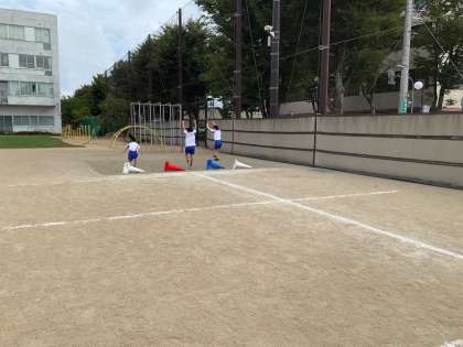 ソフトボール投げと、走り幅跳びの練習をしました。ソフトボール投げは本番のルールや投げるタイミングを意識しました。走り幅跳びは、自分に合った助走のスタート位置を決めることを意識しました。