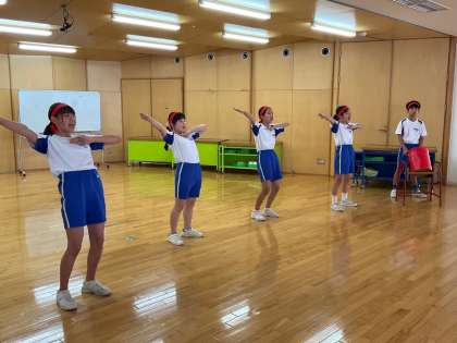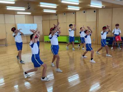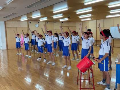 全校のみんなに応援を覚えてもらうためビデオ撮影を行いました。ビデオを通しても気合が伝わるように力いっぱい表現しました。赤団の様子です。