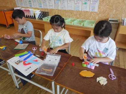 1年生は、2学期から係活動をスタートしました。デザイン係は折り紙で飾りを作って、教室に飾ったり、マジック係は手品の練習をしたりしています。どの係も、楽しいクラスにしようと工夫を凝らしています。