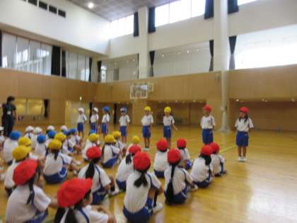 運動会に向けてリレーのバトン受け渡し練習、玉入れ練習を行いました。学年の代表としてリレーに出る友達に対して「がんばれ」の気持ちを込めて温かい拍手を送りました。代表の選手も、運動会に向けて「がんばるぞ」という思いが顔に表れていました。
