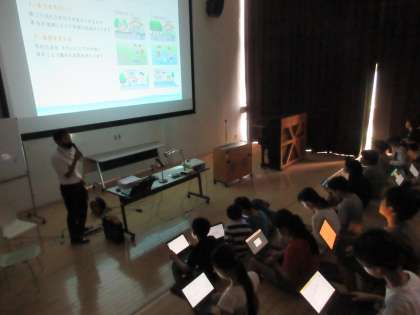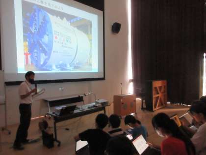 下水道課の職員の方2名にお越しいただき、水防のための下水道の働きや、下水道の秘密、職員の思いについて教えていただきました。道路の下には、人々の生活をより安全にするための工夫があることに気付きました。
