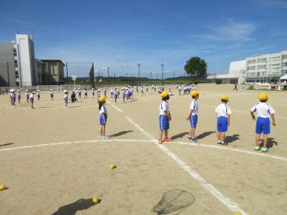 2年生の運動会の玉入れの様子です。声や動きを揃えたり、玉を一生懸命入れたり練習してきました。本番では、練習した成果が出せるように頑張りましょう。