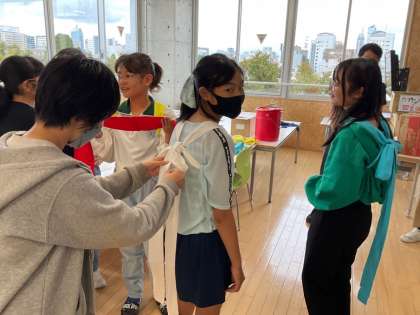 団リーダーは、運動会本番で付けるタスキの付ける練習をしました。かっこよく本番を迎えたいです。