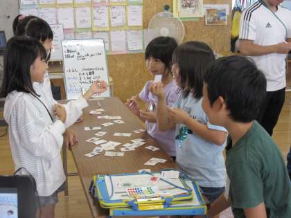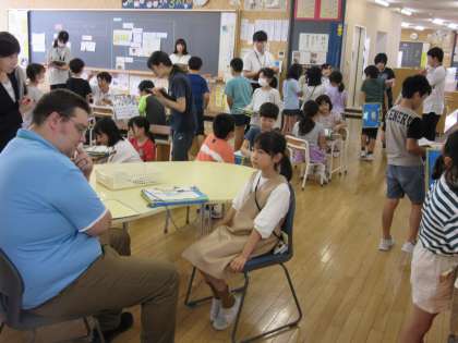 先生の好きな物クイズのためのインタビューをしています。What do you like?のやりとりが上手になってきました。ジェスチャーやリアクション英語にもチャレンジしています。