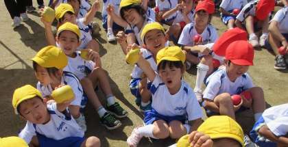 玉入れ前の様子です。玉を握りしめて気合い注入。