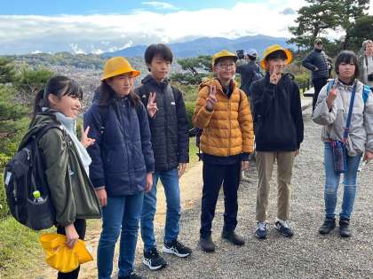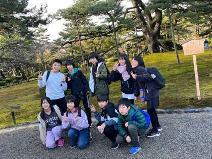 兼六園に着き、班ごとに見学をしました。金沢市が一望できる所や、有名な根上松のところで記念写真を撮ったりしました。