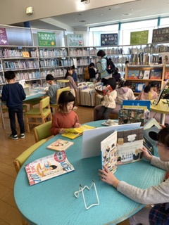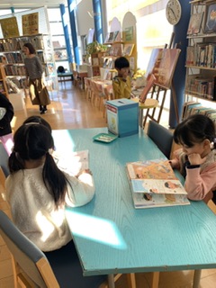 大島絵本館で読書中です。