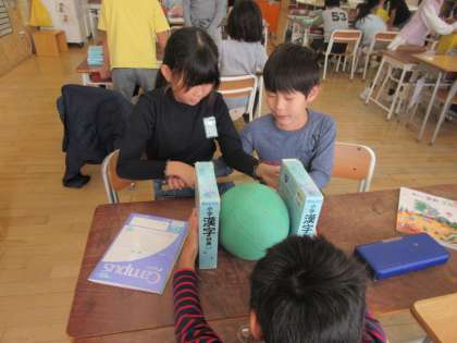 国語辞典とものさしを使っていろいろな球の直径をはかってみました。はかり方に「なるほど!」と納得しながら、大小さまざまなサイズの球の直径をはかることができました。