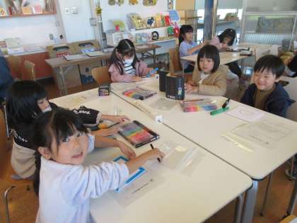 ワークショップで世界に一つだけのパズルを作りました。好きなキャラクターや模様を描いています。