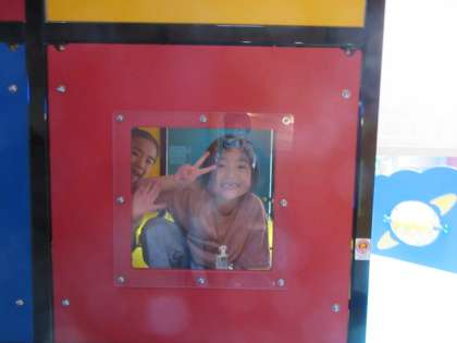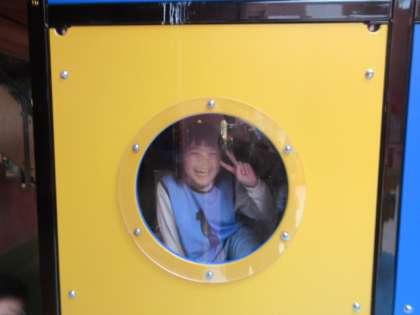 アスレチックの窓からピース! ながーい迷路に挑戦しています。