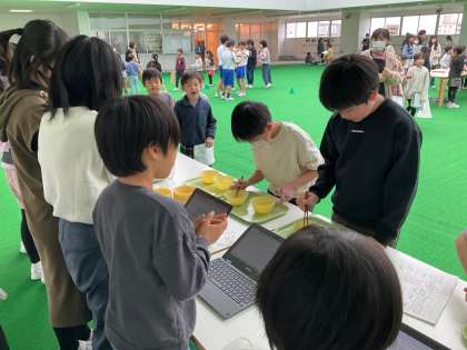 オータムスマイルフェスティバル最終日は、6年生と1年生がお客さんの日です。企画する側だった6年生も、いろいろ委員会のブースを満喫して楽しんでいました。一方で最後まで自分の委員会のブースの運営をがんばる子もいました。どの子も生き生きと活動していました。