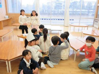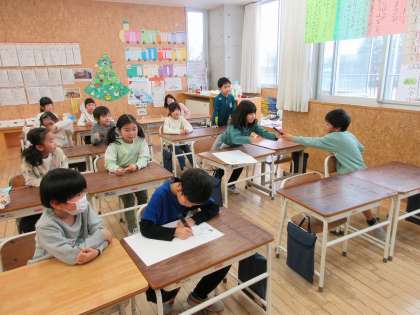 今日は、2学期最後のお楽しみ会をしました。わくわく集会係が中心になって、どんな催し物をするかを企画してきました。今回は、クイズ、お絵かき大会、紙芝居の読み聞かせ、風船遊び、爆弾ゲーム等、盛りだくさんの楽しい企画がありました。