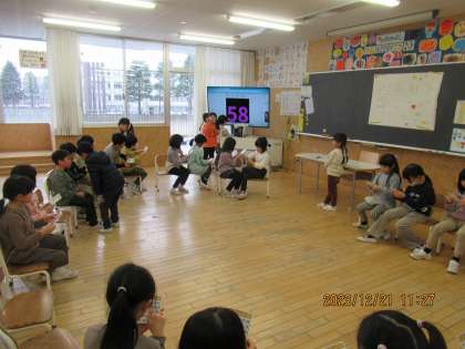 ビンゴや椅子取りゲームなど、各係が企画した遊びをしました。みんなに伝わるように、ルール説明を頑張っている様子です。