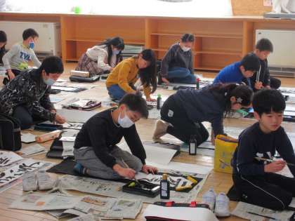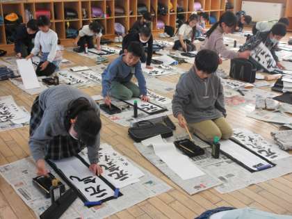 書き初め大会を行いました。どの子供も、これまでで一番きれいな字を書こうと、集中していました。