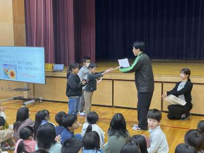久しぶりに学年みんなでそろい、3学期の活動や「4年生になること」を意識して過ごすことを確認しました。とてもよい姿勢で、真剣な眼差しで話を聞く姿が見られました。学年レクリエーションでは、大人数で「猛獣狩りに行こうよ」ゲームをしました。大盛り上がりでたくさんの笑顔をが見られ素敵な瞬間でした。2学期の3!3!プロジェクトの表彰式も行いました。3学期は自分たちでイベントを考えてやりたいと意気込んでいる3年生です。3学期もみんなでがんばりましょう!
