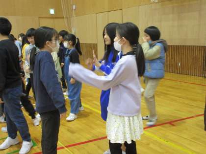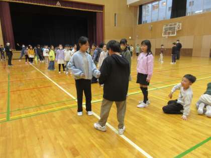 2学期から構想していた、学年集会を行いました。「花咲く絆 みんなで思い出無限大 集会」として、学級代表が考えた遊びを楽しみました。
