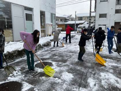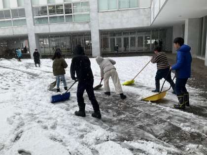 雪が降ったので、6年生は朝、雪かきを行いましたスコップが、足りなくなるくらいたくさんの人が協力してくれました。全校のために役立ちたいという思いで、一生懸命がんばりました。
