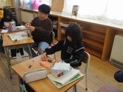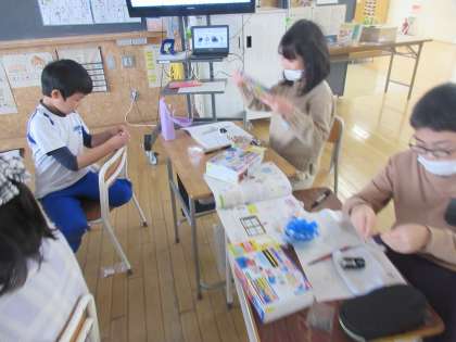 どんなつなぎ方をすると明かりがつくのか、予想をした後、実験してみました。つなぎ方のひみつが分かってきました。