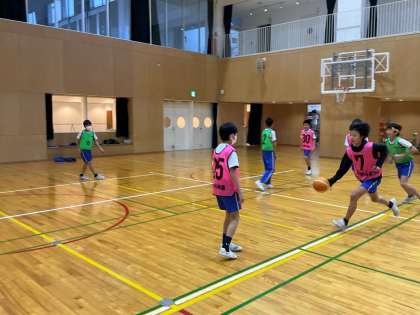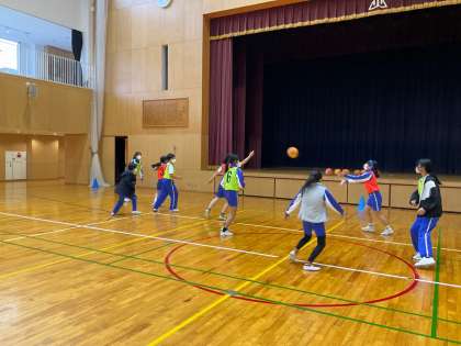6年生は体育科でバスケットボールの学習に取り組んでいます。チームごとに作戦や役割を考えて工夫してプレーしています。盛り上がっています。