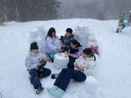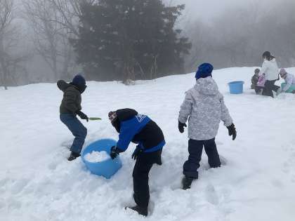 造形遊びも大きなかまくらをつくろうとがんばっています!!