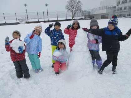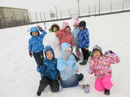 最後は、団ごとに雪だるまと一緒に記念写真を撮りました。