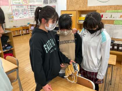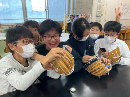 大谷選手のグローブが届き、子供たちはうれしそうに触れていました。「キャッチボールしてみたい」と目を輝かせていました。なぜ大谷選手は、小学生にグローブをプレゼントしよう思ったのか、大谷選手の思いについて、みんなで考えました。
