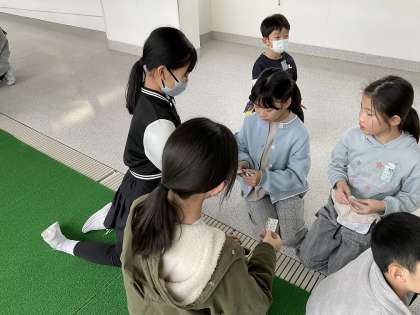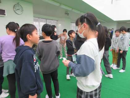 4年生の委員会活動体験に向けて、4・5年生で顔合わせを行いました。5年生は自分たちの委員会のスローガンを伝えたり、活動の内容が書かれている名札を渡したりしました。力を合わせてがんばっていこうとしている子どもたちです。