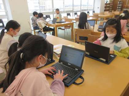 国語科では、地震や津波に備えて自分たちがすべきことを、意見文としてまとめています。本やインターネットを活用して調べたことを、相手に説得力のある文章に表そうと、試行錯誤していました。1月の地震を経験したこともあり、どの子供も真剣です。