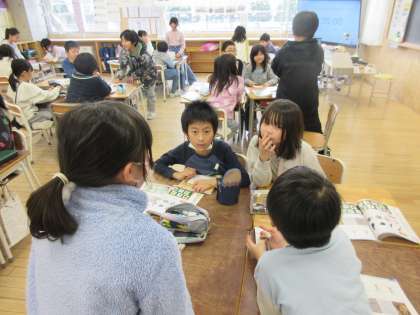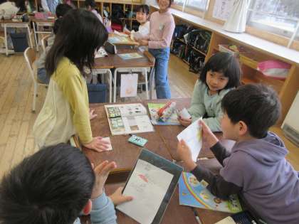 各自作ったスリーヒントクイズをみんなで楽しみました。It's 〇〇. Is it 〇〇?など英語でやりとりできました。
