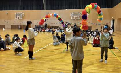 卒業を祝う会が全校で開かれました。5年ぶりに全校が集まり、6年生へ感謝の気持ちをそれぞれ歌や対決、劇などで伝えました。5年生はこれまでお祝い週間や飾りつけ、集会の準備などそれぞれ活動を進めてきました。全校の笑顔を見て、5年生もとても嬉しそうでした。