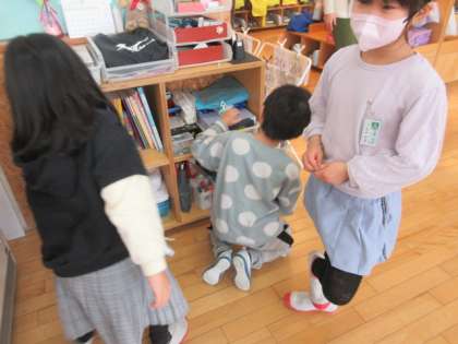 すきまちゃんの好きな隙間を探しに、教室やオープンスペースの探検に出かけました。狭いところや暗いところを見付けては、「ここ、すきまちゃんにぴったりの場所だ!」と大喜びです。
