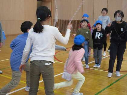 長縄跳びを跳ぶこつを優しく教えてもらいました。
