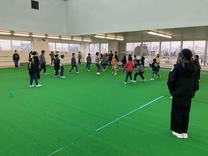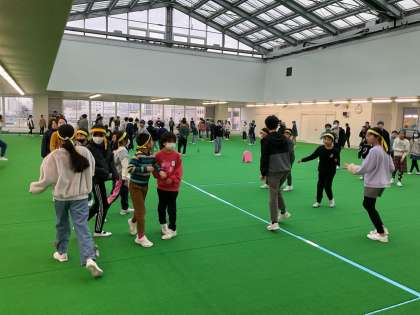6年生からの卒業プロジェクトで、今日は青団と黄団の交流ドッチビーがありました。実況付きでワイワイ盛り上がり楽しい時間を過ごしました。