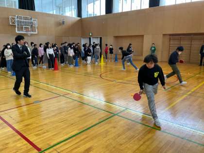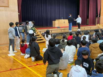卒業プロジェクトで、5年生と最高の思い出をつくろう集会をしました。ドッチビー、ピンポンリレー、ジャンケンゲームの三つのゲームで盛り上がりました。