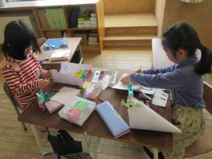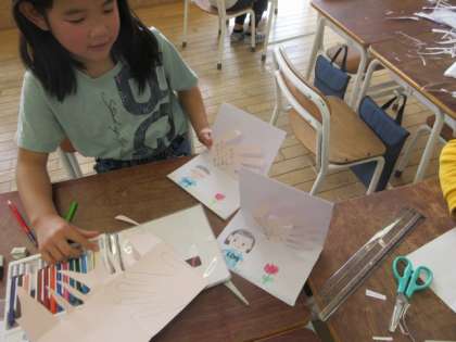 家族に感謝の気持ちを形にして表そうと、手紙を書いたりメッセージカードを作ったりしました。自分のこれまでを絵本にする子供もいて、一人一人の思いがこもったものになりました。