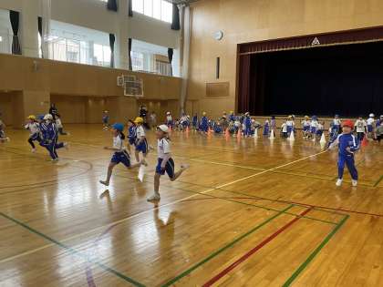 初めての学年体育の様子です。スタートの練習を中心に行いました。