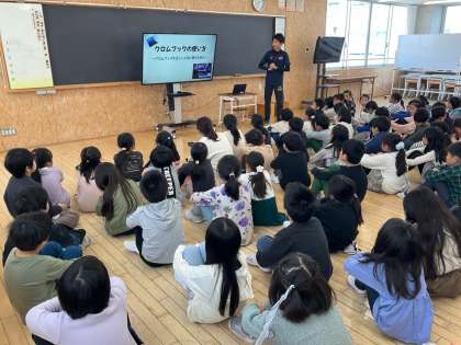 三年生は、自分で学ぶ力を育てていくために、これからの学習に欠かせないクロームブックの使い方についてのオリエンテーションをしました。マナーやモラルなどの正しい使い方、クラスルームやチャットなどの機能、タイピングなどについて話を聞きました。約束を守って上手に活用していきたいです。